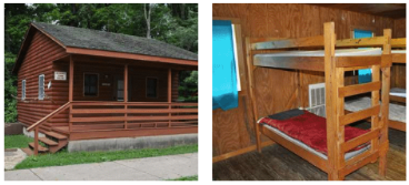 - Spring Run Cottage – Two separate rooms with 5 sets of bunk beds and a full bathroom in each room. There are also shared bathrooms in the same building. Ideal for larger families.