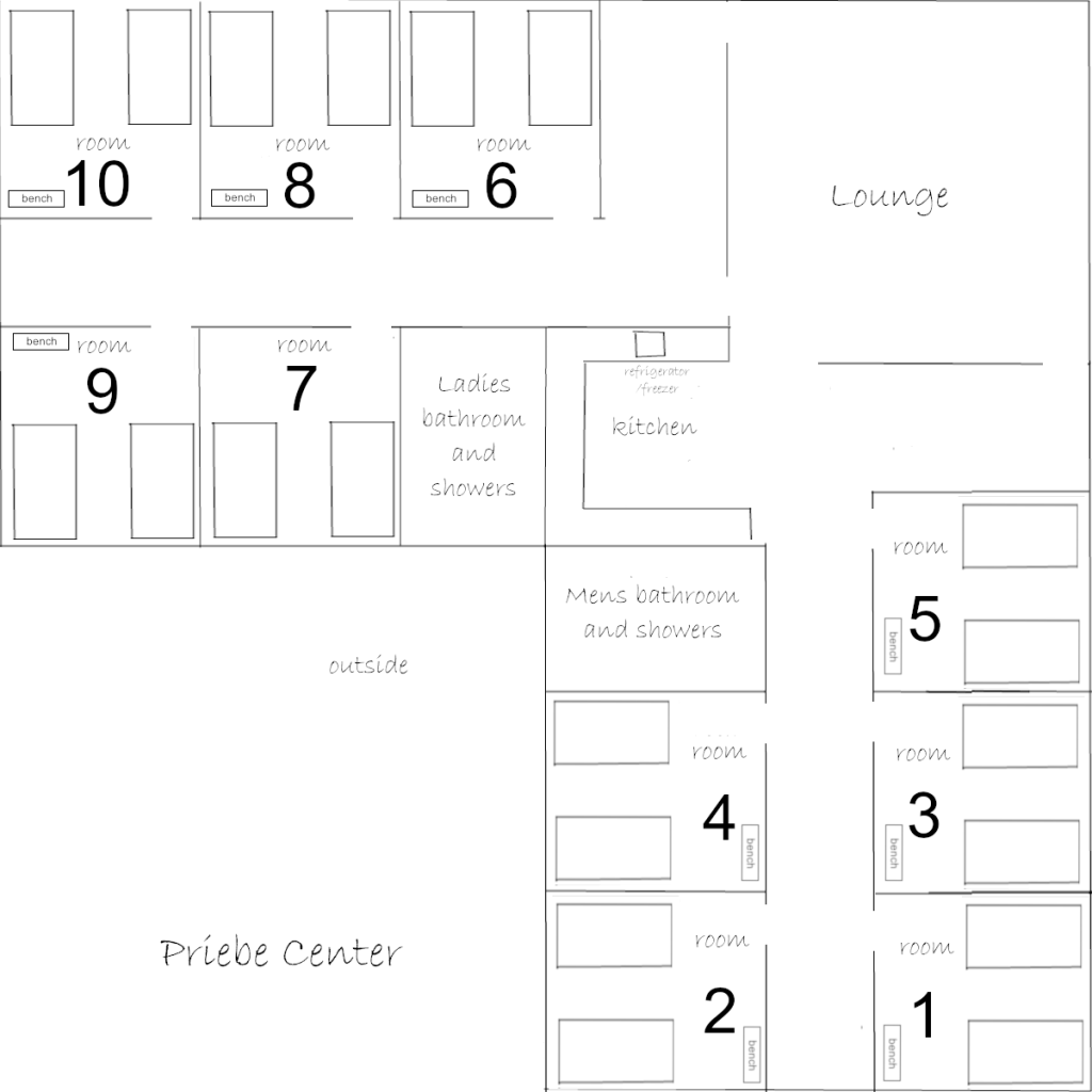 - Priebe Center – Retreat-style housing with 10 rooms in two wings. Each room has two twin beds. Each wing has a shared restroom. (Note you family may be split up into multiple rooms depending on family size.)